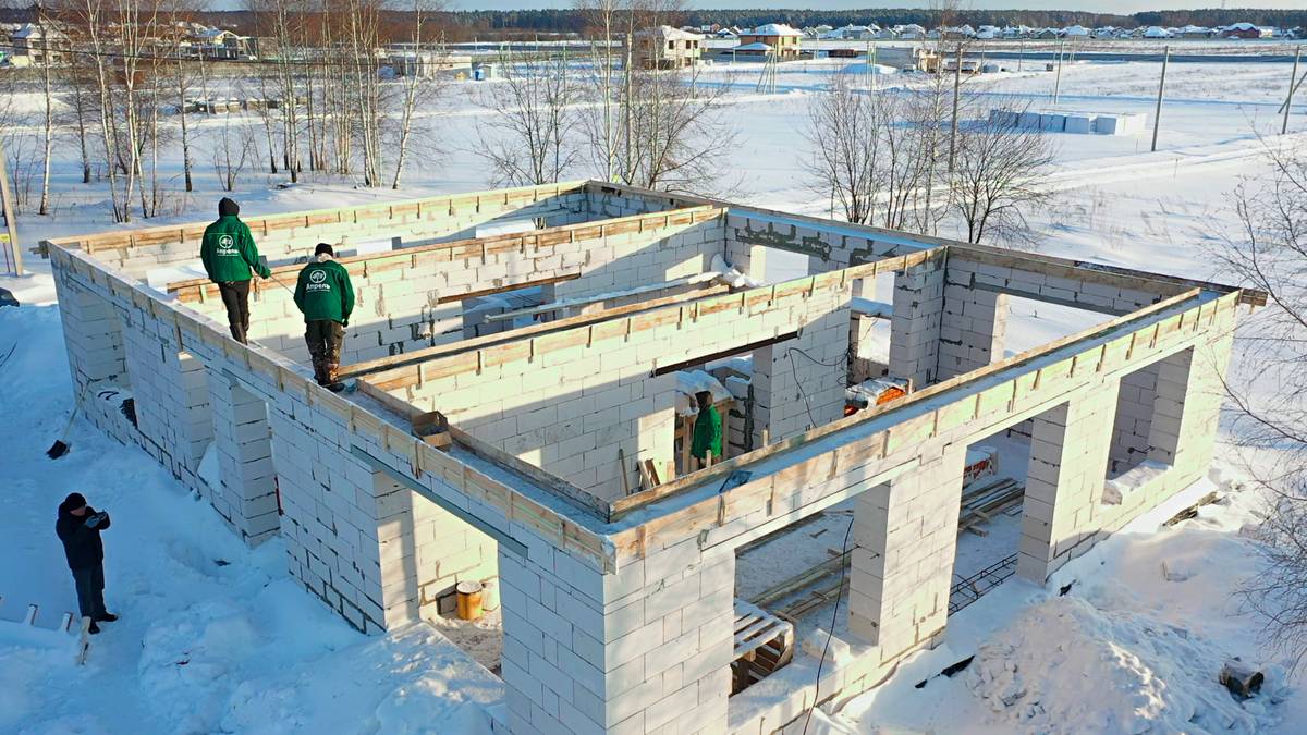 Зимнее строительство сокращает срок сдачи вашего дома на несколько месяцев. Если возведение коробки произвести зимой, с наступлением тепла можно смело браться за отделочные работы.