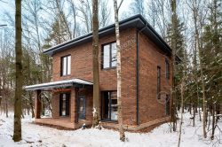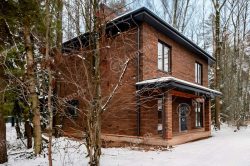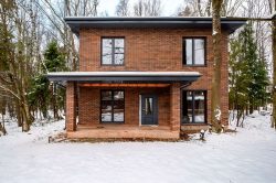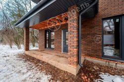 В этом доме 4 спальных комнаты, кухня-гостиная и 3 санузла. Капитальные стены из керамического блока  толщиной 380 мм + 100 мм утеплитель. Фасад дома выполнен из кирпича марки 250 в стиле баварская кладка. Терраса 25 м2 с выходом на задний двор.