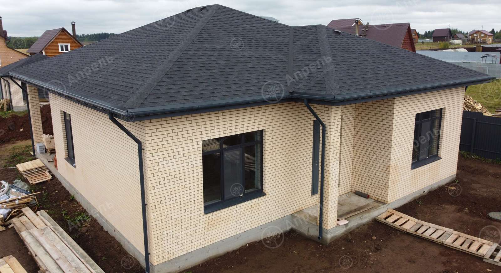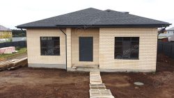 В этом доме 3 спальных комнаты, кухня-гостиная и 1 санузел. Капитальные стены из газобетонных блоков. Фасад дома из клинкерного кирпича марки 250. Дом с крытой террасой на задний двор.