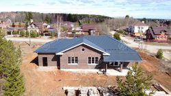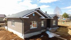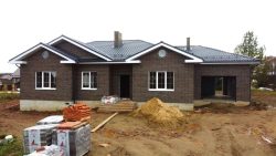 В этом доме 3 спальных комнаты, кухня-столовая, гостиная и 2 санузла. Капитальные стены из газобетонных блоков. Фасад дома из клинкерного кирпича с цветным швом. Дом с гаражом и террасой на задний двор.